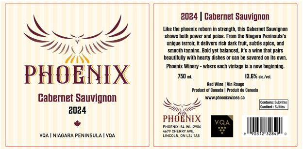 Like the Phoenix reborn in strength, This Cabernet Sauvignon shows both power and poise. From Niagara Peninsula’s unique terrior, it deliver rich dark fruit, subtle spice, and smooth tannins. Bold yet balanced, it is a wine that pair beautifully with hearty dishes or can be savored on its own.